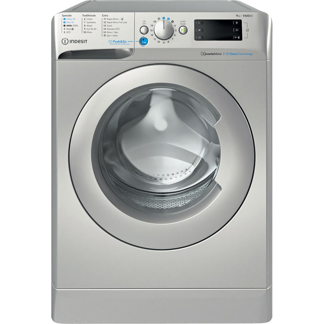 Indesit Push&Go BWE 91496X SV UK 9kg Washing Machine with 1400 rpm - Silver - A Rated