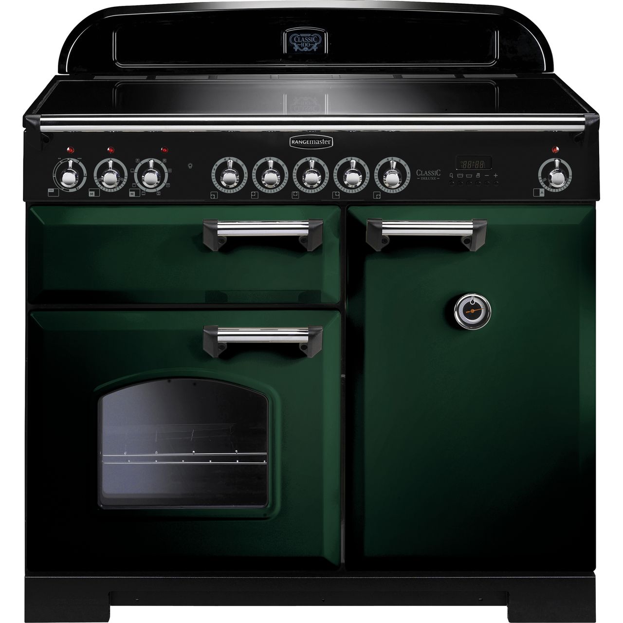 Rangemaster Classic Deluxe CDL100EIRG/C 100cm wide Electric Range Cooker with Induction Hob - Racing Green / Chrome - A/A Rated
