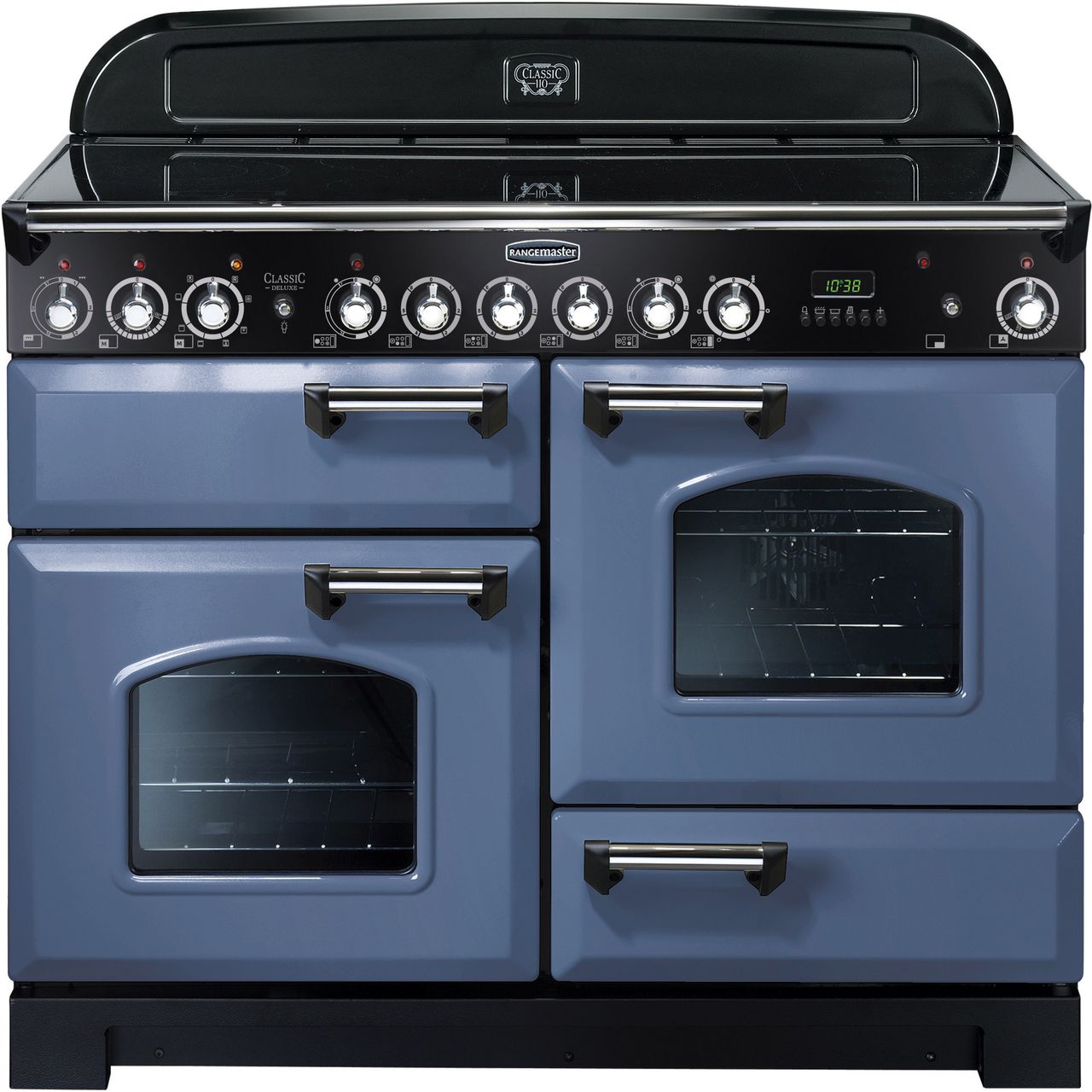Rangemaster Classic Deluxe CDL110ECSB/C 110cm wide Electric Range Cooker with Ceramic Hob - Stone Blue / Chrome - A/A Rated