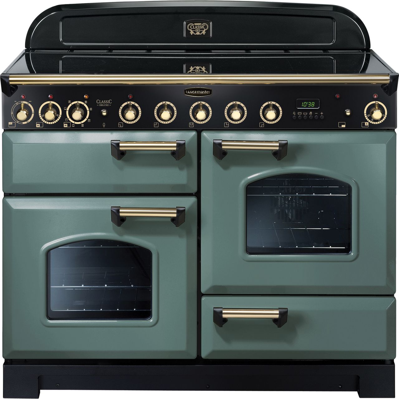 Rangemaster Classic Deluxe CDL110EIMG/B 110cm wide Electric Range Cooker with Induction Hob - Mineral Green / Brass - A/A Rated