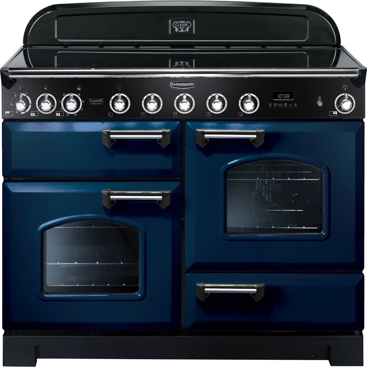 Rangemaster Classic Deluxe CDL110EIRB/C 110cm wide Electric Range Cooker with Induction Hob - Regal Blue / Chrome - A/A Rated