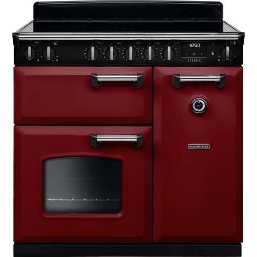 Rangemaster Classic CL90EIPBOR/CM1 90cm wide Electric Range Cooker with Induction Hob - Bordeaux / Chrome - A Rated
