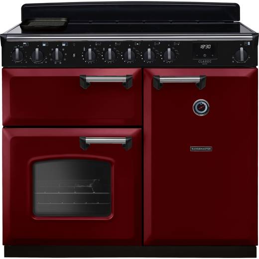 Rangemaster Classic Deluxe CLDL100EIPBOR/CM1 100cm wide Electric Range Cooker with Induction Hob - Bordeaux / Chrome - A/A Rated
