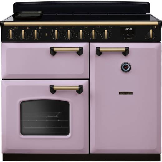 Rangemaster Classic Deluxe CLDL100EIPHTH/AB1 100cm wide Electric Range Cooker with Induction Hob - Heather / Antique Brass - A/A Rated