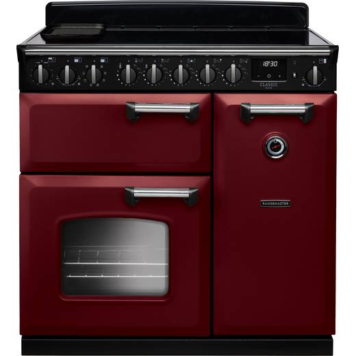 Rangemaster Classic Deluxe CLDL90EIPBOR/CM1 90cm wide Electric Range Cooker with Induction Hob - Bordeaux / Chrome - A/A Rated