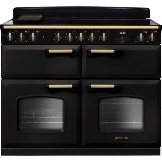 Rangemaster Classic Deluxe BC CLDLB110EIPCBL/AB1 110cm wide Electric Range Cooker with Induction Hob - Charcoal Black / Antique Brass - A/A Rated