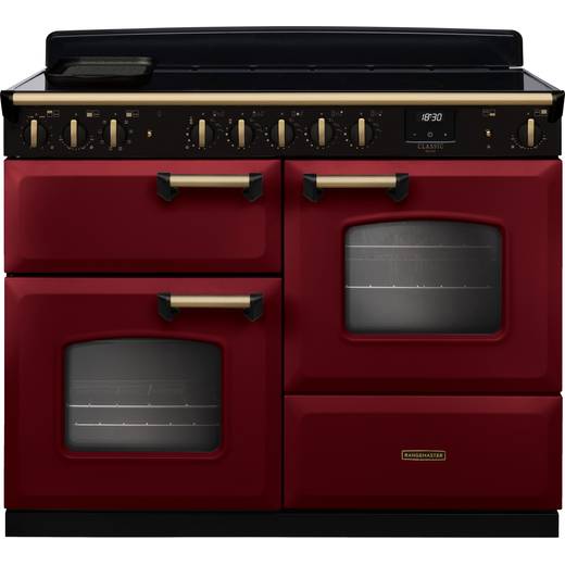 Rangemaster Classic Deluxe OC CLDLO110EIPBOR/AB1 110cm wide Electric Range Cooker with Induction Hob - Bordeaux / Antique Brass - A/A Rated
