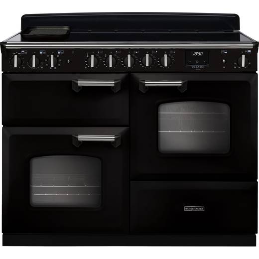 Rangemaster Classic Deluxe OC CLDLO110EIPGBL/CM1 110cm wide Electric Range Cooker with Induction Hob - Black / Chrome - A/A Rated