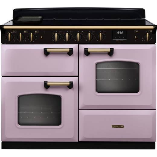 Rangemaster Classic Deluxe OC CLDLO110EIPHTH/AB1 110cm wide Electric Range Cooker with Induction Hob - Heather / Antique Brass - A/A Rated
