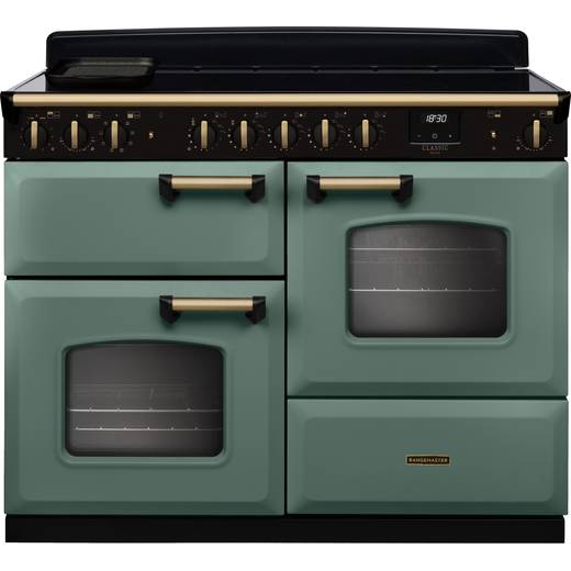 Rangemaster Classic Deluxe OC CLDLO110EIPMGR/AB1 110cm wide Electric Range Cooker with Induction Hob - Mineral Green / Antique Brass - A/A Rated