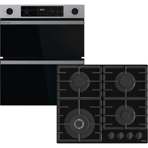 Hisense Hi6 HIPKD4AX60G1 Built Under Electric Double Oven and Gas Hob Pack - Black Stainless Steel - A/A Rated