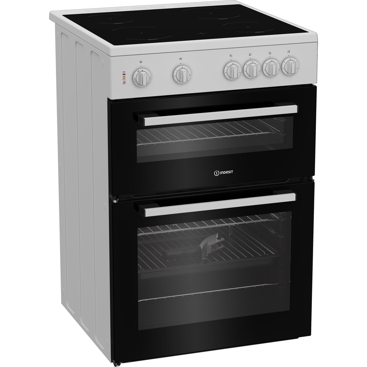Indesit IT60V9KMW/UK 60cm Wide Double Oven Electric Cooker with Ceramic Hob - White - A Rated