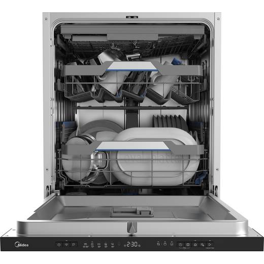 Midea MDWEB1403M(B)-WG-UK Wifi Connected Fully Integrated Full Size Dishwasher - Black Control Panel with Sliding Door Hinge Kit - C Rated