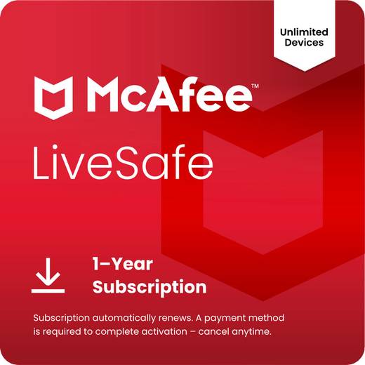 McAfee LiveSafe Digital Download for Unlimited Devices, 1 Year Subscription [Auto-Renews with McAfee]