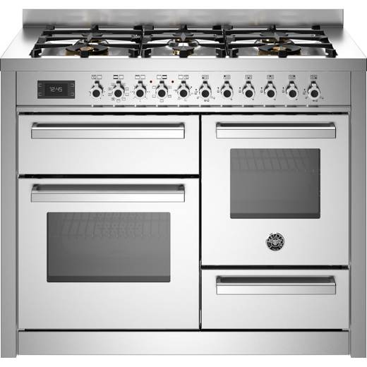 Bertazzoni Professional Series PRO116L3EXT 110cm wide Dual Fuel Range Cooker with Gas Hob - Stainless Steel - A Rated